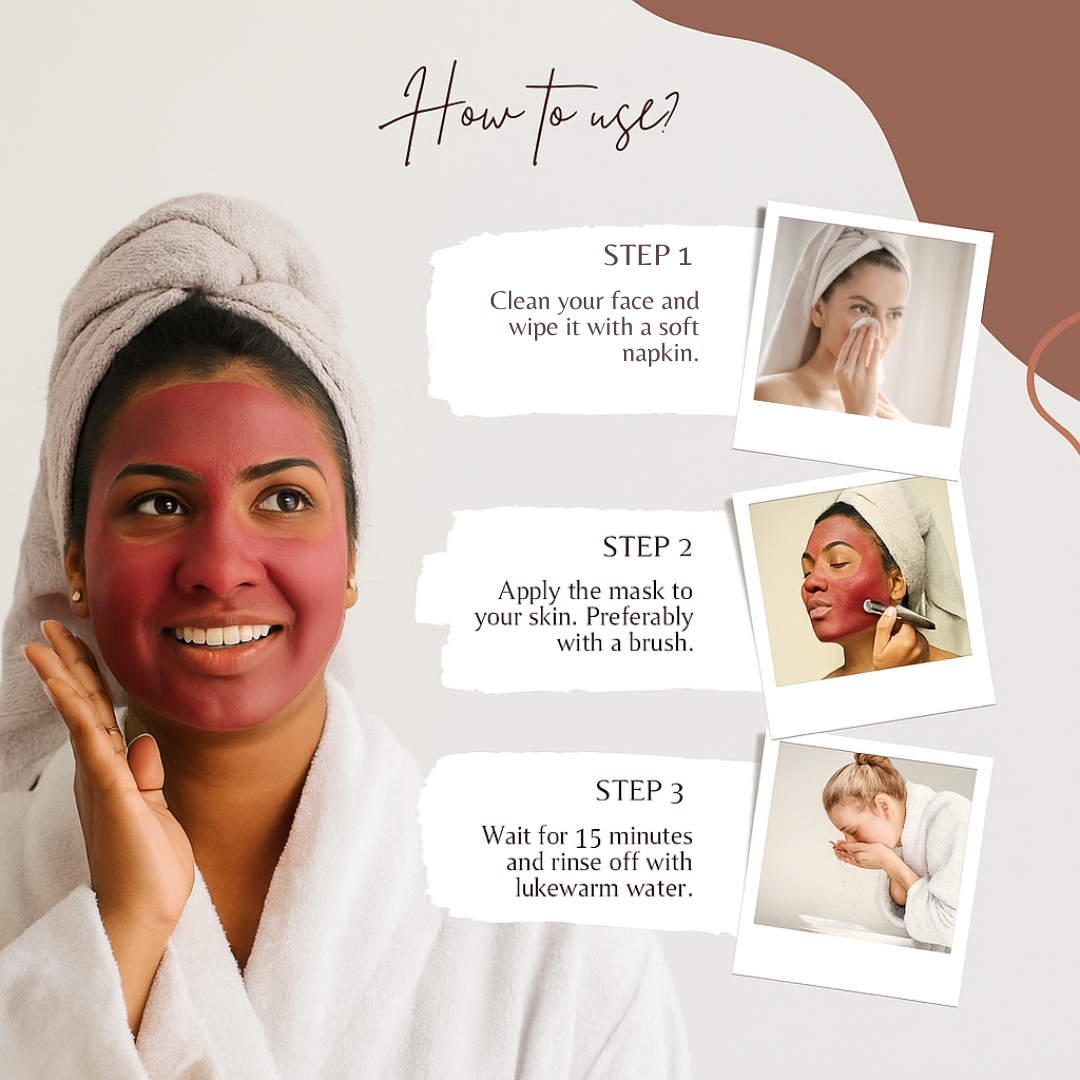 Beetroot, Rose Powder and Multani Mitti.